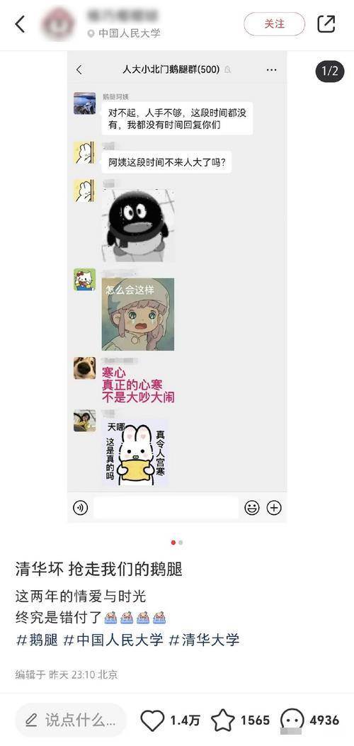 看到鵝腿阿姨轉戰清華的消息后,人大、北大的學子坐不住了,他們害怕阿姨再也不回來了,于是紛紛在網上「賣慘」,「哀求」阿姨回來,順帶再罵一罵清華「挖墻腳」的行為。