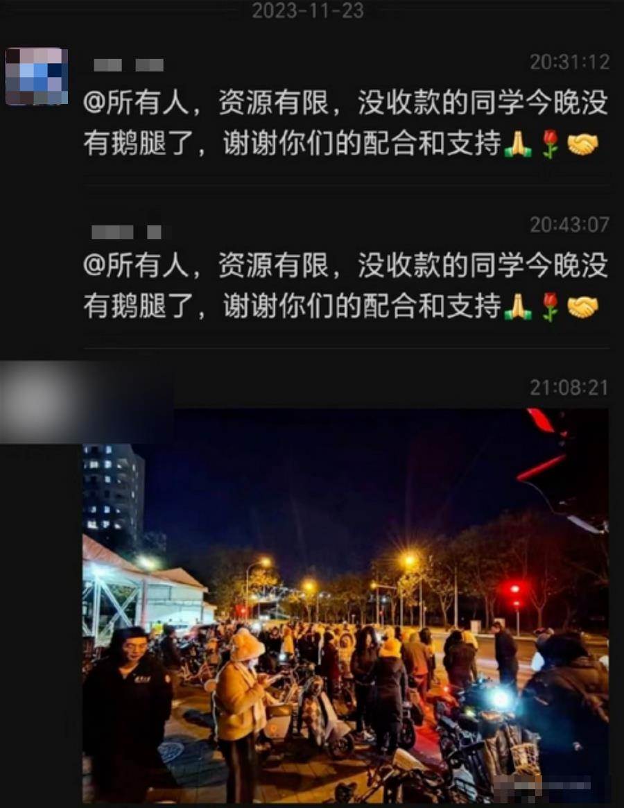 從2018年開始,鵝腿阿姨就在這幾所高校附近賣鵝腿,雖然生意不錯,但也不至于大排長龍,「一腿難求」。