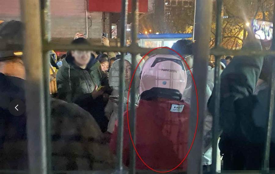 造成這種局面的,就是人群中這位戴著粉色頭盔的中年女子,傳說中的鵝腿阿姨。